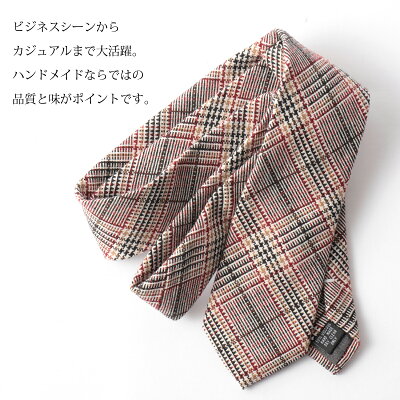 ウールネクタイ ハンドメイドツイード Quit Running ウールタイ 英国ブランド 男性 クイトランニング レッド ベージュ チェック ギフト BOX付 ハンドメイド 手洗い洗濯OK メンズ シンプル 新社会人 トラッド