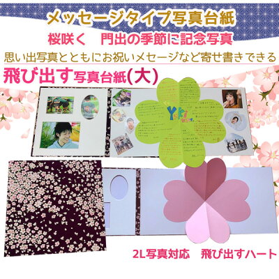 ご注文より一週間以内に発送予定 ●桜咲く門出の季節に 記念写真 思い出写真とともにお祝いメセージなど寄せ書きできる飛び出す写真台紙 門出の季節に最適♪