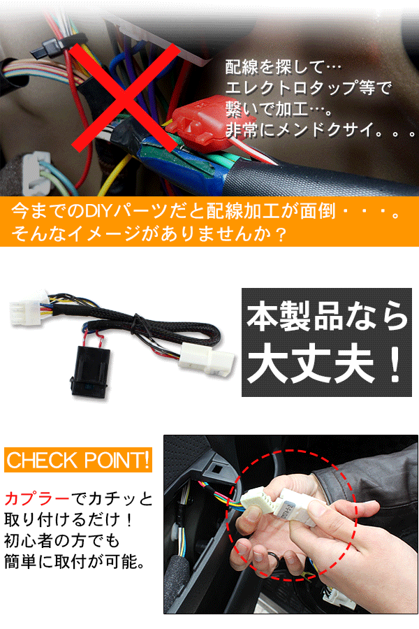 車両側の配線も傷付けないから安心して取付が可能です。