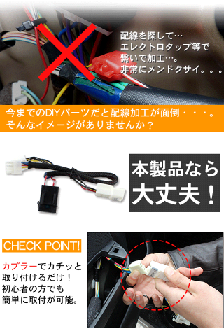 ・ドアパネルを外してスイッチ部分の間に繋げるだけの簡単装着。